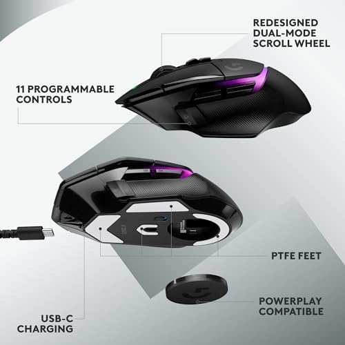 Logitech G 502 X Plus Lightspeedワイヤレス光学マウス-LIGHTFORCEハイブリッドスイッチ、LIGHTSYNC RGB、HERO 25 Kゲームセンサー、PCと互換性がある-macOS/Windows-ブラック