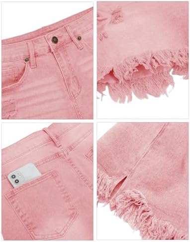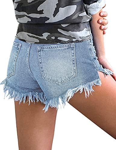 MODARANI カットオフ デニムショーツ レディース ほつれ加工 ジーンズ ショート キュート ミッドライズ リップド ホットショーツ 快適 伸縮性
