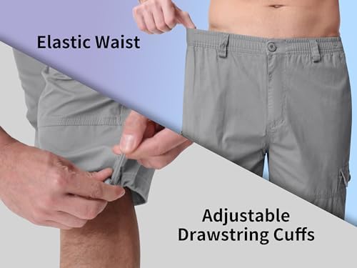 MAGNIVIT メンズ カプリ ロングカーゴショーツ カジュアルツイル 伸縮性 膝下ショーツ ゆったりフィット マルチポケット