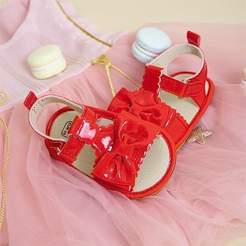 Meckior ベビー 幼児 幼児 女児 PU レザー ソフト クローズトゥ サマー サンダル フラワー プリンセス フラットシューズ