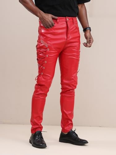 Idopy メンズ ロックスチームパンク 編み上げPUレザーパンツ スリムフィット US サイズ: XL カラー: ブラック
