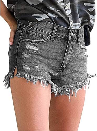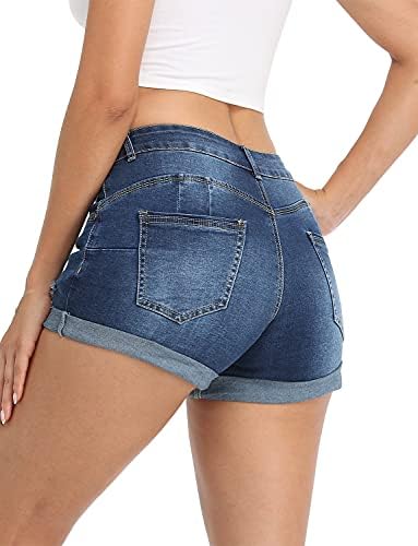 MODARANI カットオフ デニムショーツ レディース ほつれ加工 ジーンズ ショート キュート ミッドライズ リップド ホットショーツ 快適 伸縮性