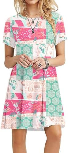 レディースサマービーチカジュアルゆったりTシャツ花半袖花ポケットSundress