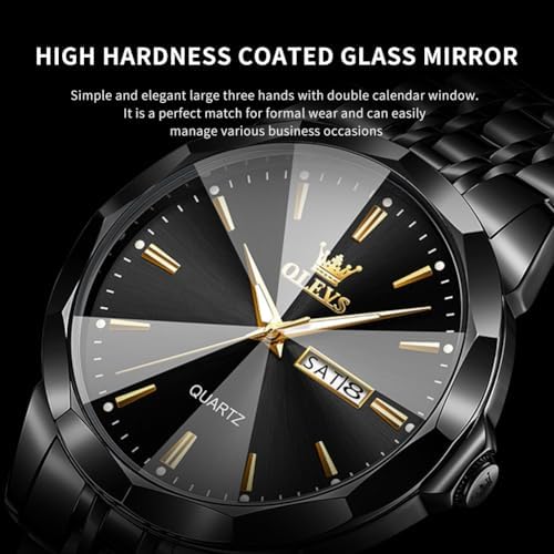OLEVS男性用腕時計ダイヤモンドビジネススーツアナログ石英ステンレス防水発光日付2色豪華カジュアル腕時計