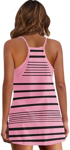 Panadilaレディース夏のノースリーブミニスカートVネックスパゲッティストラップ太陽のスカートポケットスポーツスカート