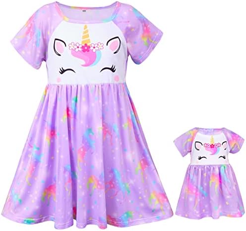 Fiodrimy ガールズ ナイトガウン ユニコーン 寝間着 ソフトナイトガウン ナイトドレス 子供用 US サイズ: 6-7 Years