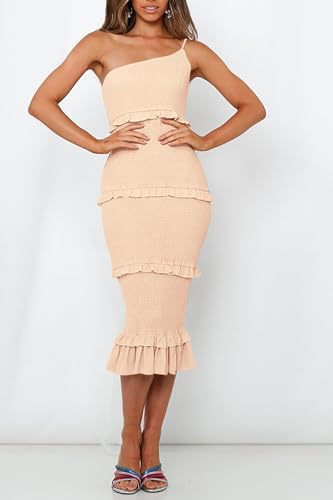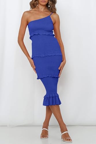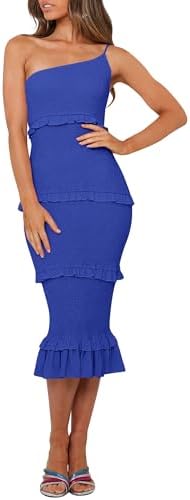 PRETTYGARDEN Womens One Shoulder Summer Dress Casual Midi Bodycon Dresses