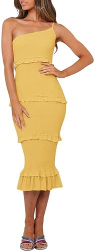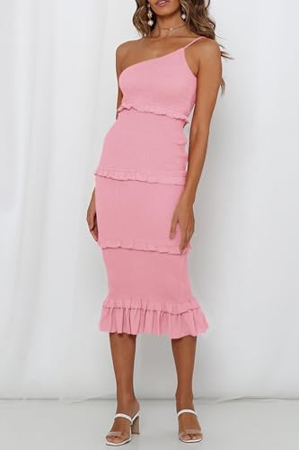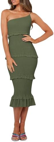 PRETTYGARDEN Womens One Shoulder Summer Dress Casual Midi Bodycon Dresses