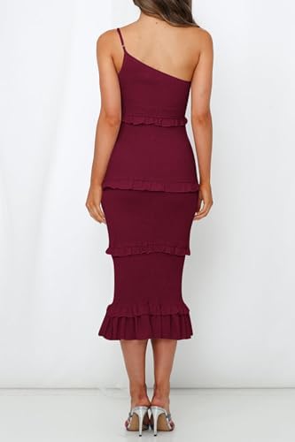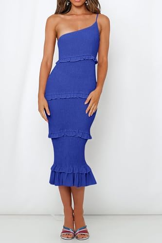 PRETTYGARDEN Womens One Shoulder Summer Dress Casual Midi Bodycon Dresses