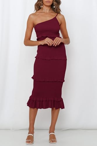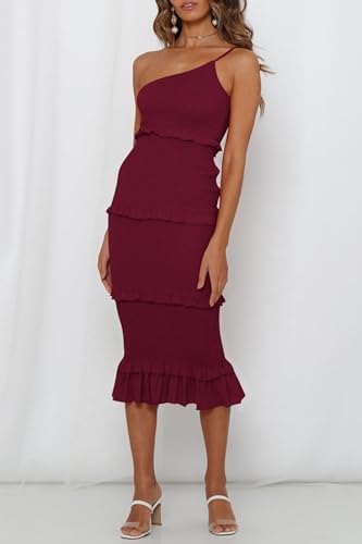 PRETTYGARDEN Womens One Shoulder Summer Dress Casual Midi Bodycon Dresses