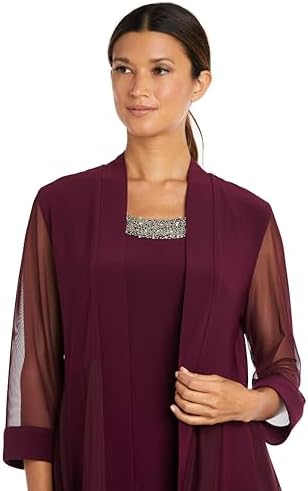 R&M Richards レディース ビーズネック 2ピースパンツセット, メルロー(Merlot), 14