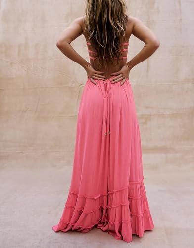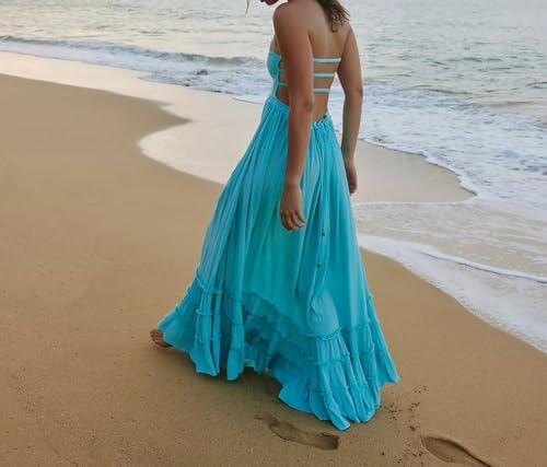 R.Vivimos レディース 夏 コットン セクシー バックレス ロングドレス