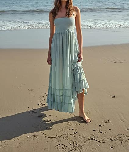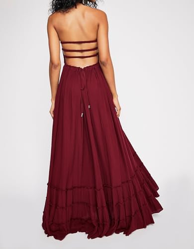 R.Vivimos レディース 夏 コットン セクシー バックレス ロングドレス