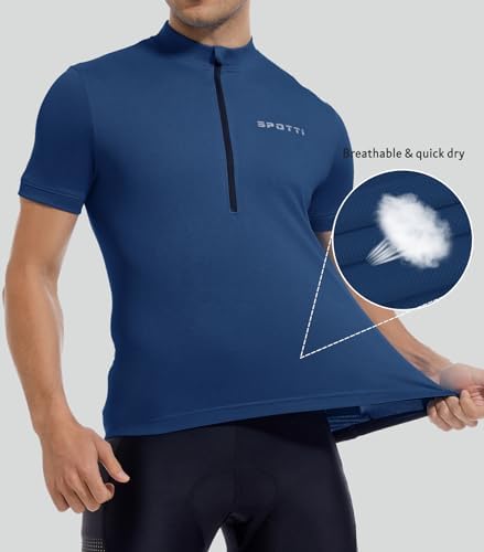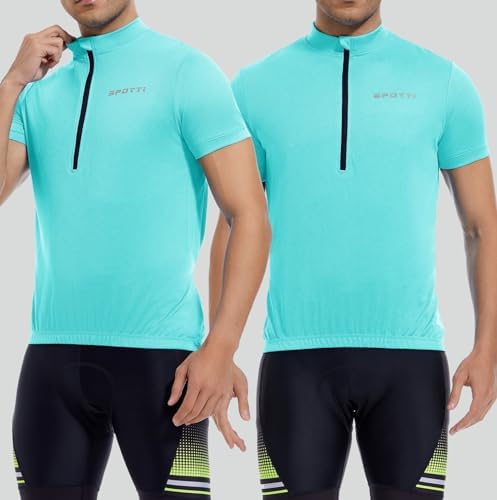 Spotti メンズ サイクリングバイクジャージ 半袖 3つのリアポケット付き 吸湿性 通気性 速乾性 サイクリングシャツ