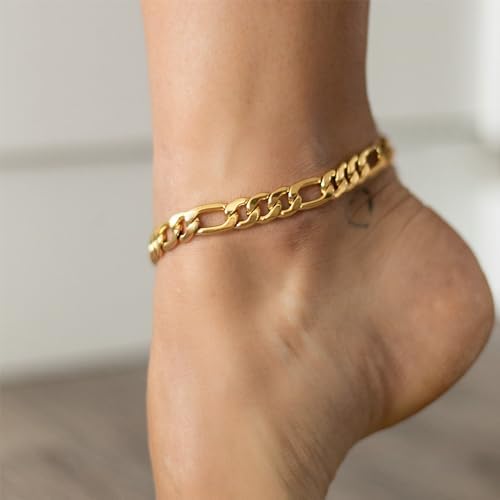 Freekiss スターリングシルバー アンクルブレスレット 女性用:上品なレイヤード防水アンクレット 調節可能なレディースアンクレットセット 積み重ね可能 ターコイズ フィガロ ビーズ キューバリンク アンクレット ビーチジュエリー 女性用, 8.5+2, 銅