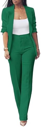 Tcremisa女性' ;sファッション2点セット長ズボンスーツワンピース開襟シングルボタンスーツとスリム長ズボンスーツビジネスウェア
