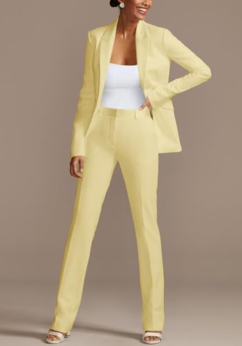 Tcremisa女性' ;sファッション2点セット長ズボンスーツワンピース開襟シングルボタンスーツとスリム長ズボンスーツビジネスウェア