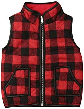 幼児 赤ちゃん 女の子 格子柄 ジッパージャケット キッズ ノースリーブ 秋冬 暖かいウエストコート ベスト ポケットコート トップス US サイズ: 4-5T カラー: レッド