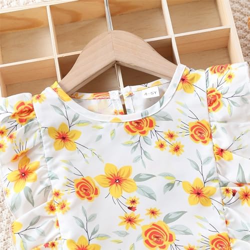 子供の女の子のスーツワンピース花の半袖Tシャツの上着+ウエストポケット夏のショートスーツの女の子のワンピース