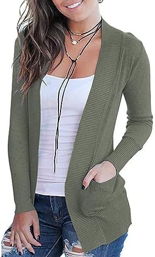 VOIANLIMO レディース オープンフロント カジュアル 長袖 ニット クラシック セーター カーディガン ポケット付き