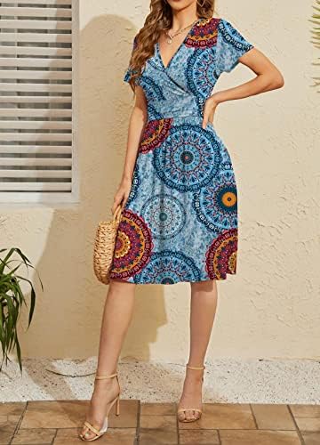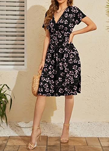 WEAZZY女性' ;夏の半袖カジュアルワンピースVネクタイポケットのフラワーパーティーワンピース
