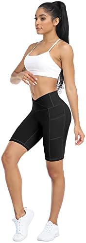 WHOUARE 4点セット女性用ポケット付き自転車ヨガショーツ、ハイウエストスポーツランニングトレーニングフィットネスショーツ