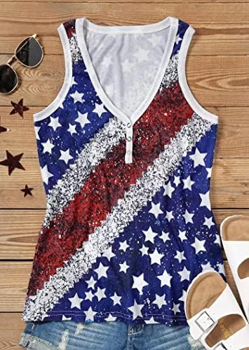 女性用アメリカ国旗ボタンVネックタンクトップカラープリントノースリーブ愛国シャツサマートップス