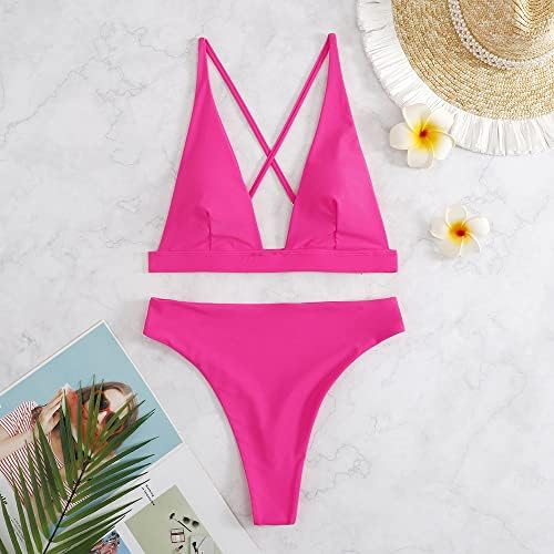 女性用ハイウエストビキニセットセクシーブラジル三角トップス深Vネック水着2点セット