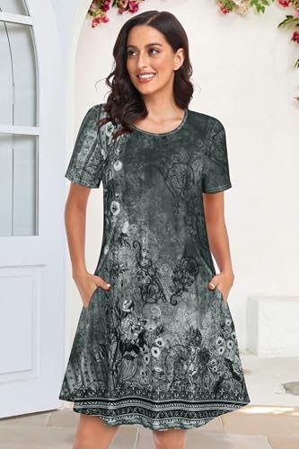 Women Summer Dress Tshirt Beach Sundress Casual Flowy Swing Short Sleeve Tunic