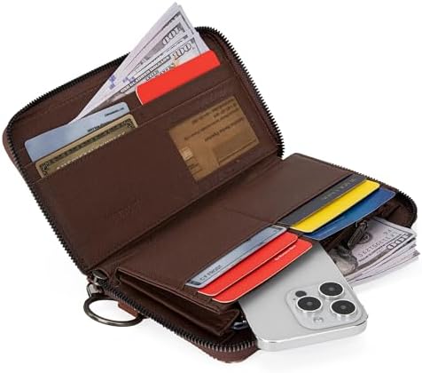 ラビミさん' ;s RFID封鎖100%革大容量ファスナー財布携帯スタンドクラッチ旅行財布手首保護