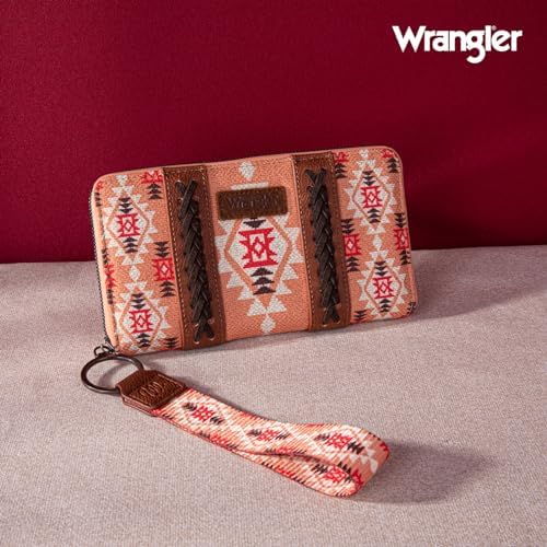 Wrangler 財布 財布 レディース ウェスタン アステカ クラッチ リストレット ウォレット クレジットカードホルダー付き, A-ベージュ, トレンディ。