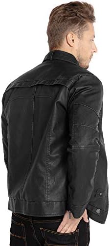 WULFUL メンズ スタンドカラー レザージャケット オートバイ フェイクレザージャケット アウター