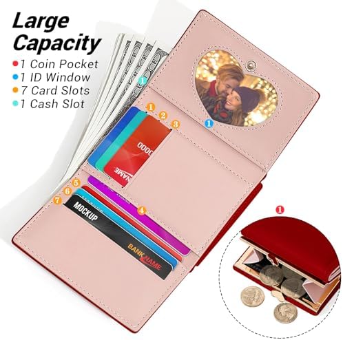 [Luckele] YINHEXI Wallet Card Holder, Small Bifold RFID Blocking Purse, Cute Small Leather Pocket Wallet for Women, Girls, Ladies (Baby Pink)