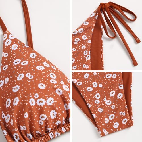 ZAFUL レディース 三角ビキニ 花柄 ストリング ビキニセット ツーピース 水着 (2-オーシャンブルー、M), ブルー, Medium