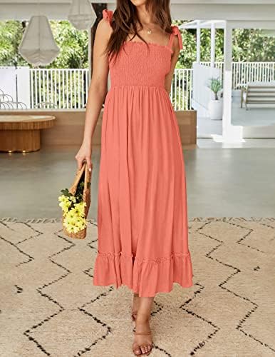 Boho Tie Strap Sleeveless Smocked Tiered Ruffle Long Maxi Dress